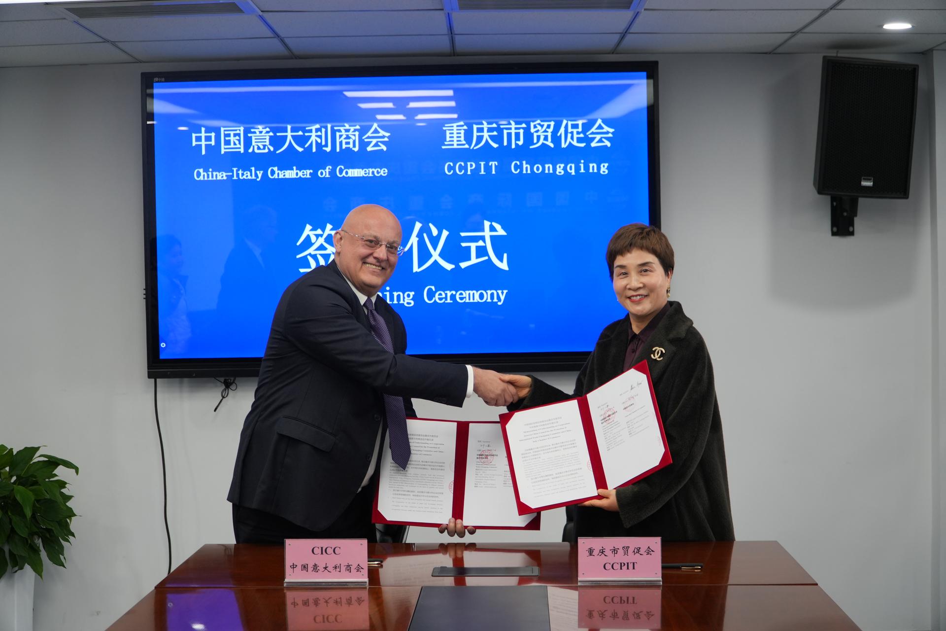 3月16日下午,市贸促会会长邓琳会见中国意大利商会西南区副会长马晓利一行,并代表重庆市贸促会与中国意大利商会签署合作备忘录。