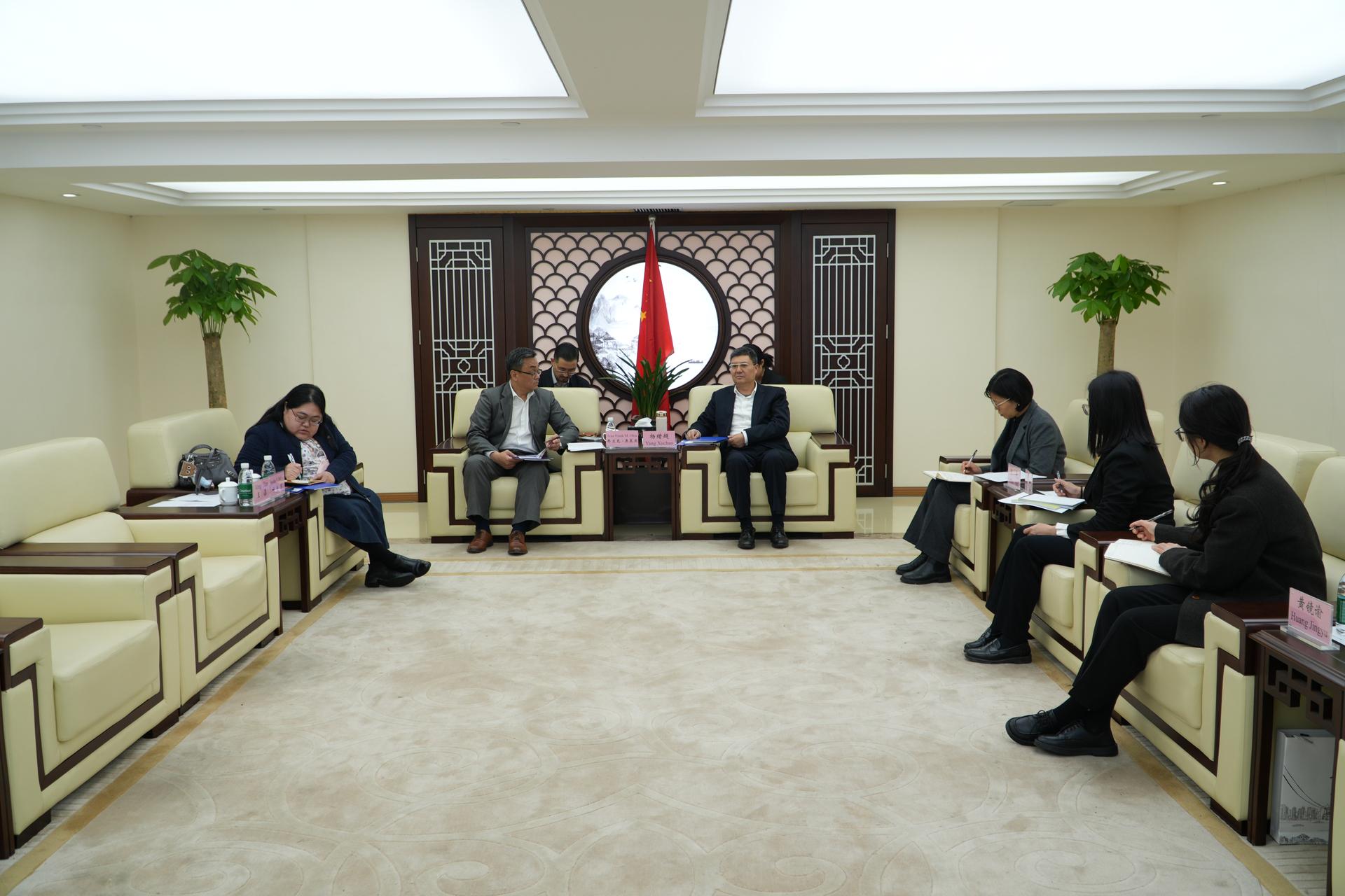 3月26日,市贸促会党组成员、副会长杨绪超会见菲律宾驻重庆总领事馆总领事弗兰克·奥莱亚一行。