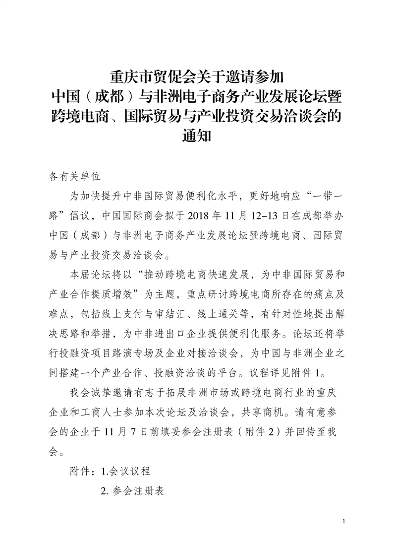 市贸促会关于邀请参加中国(成都)与非洲电子商务产业发展论坛暨跨境电商、国际贸易与产业投资交易洽谈会活动的通知