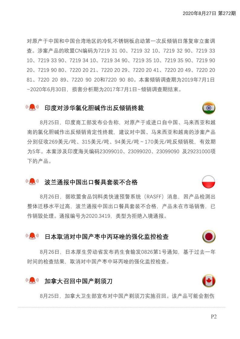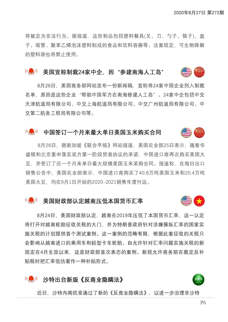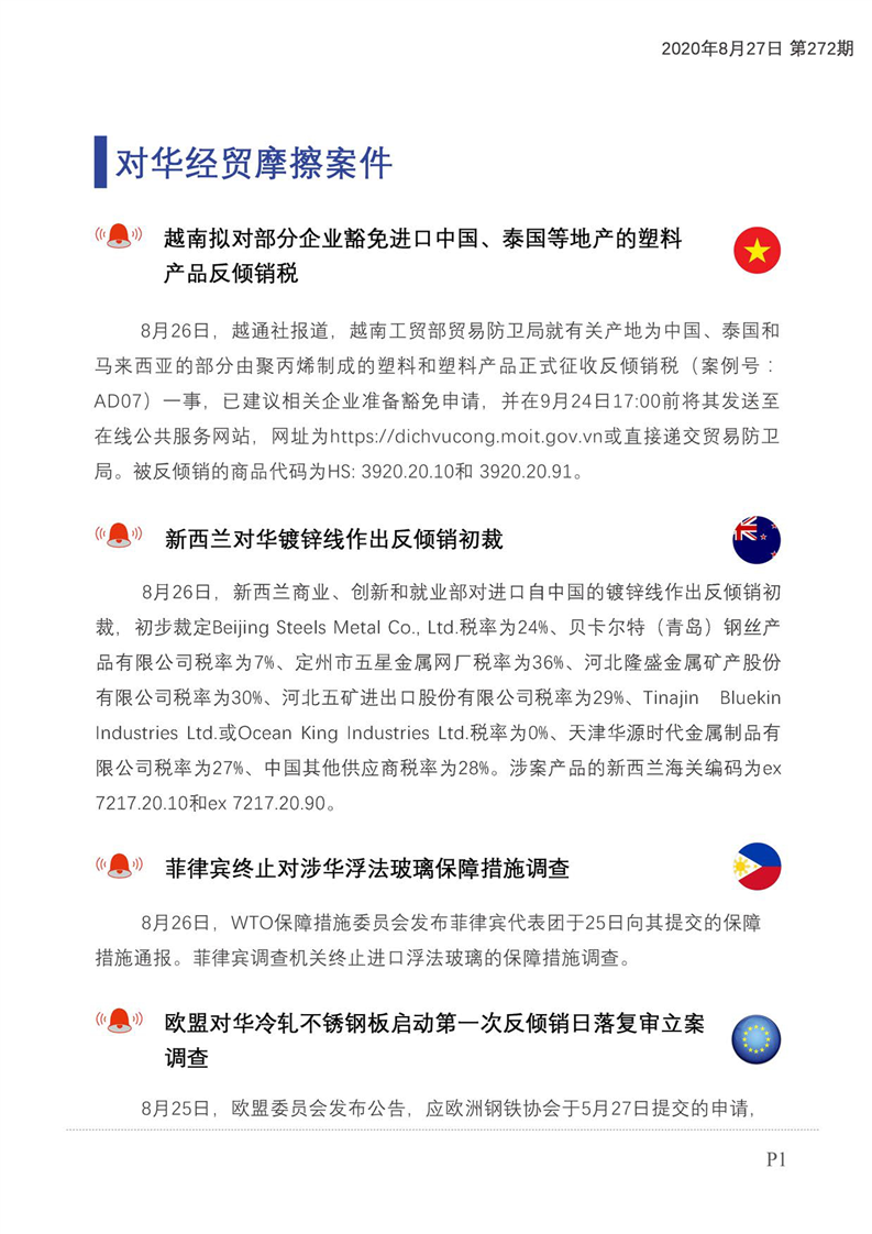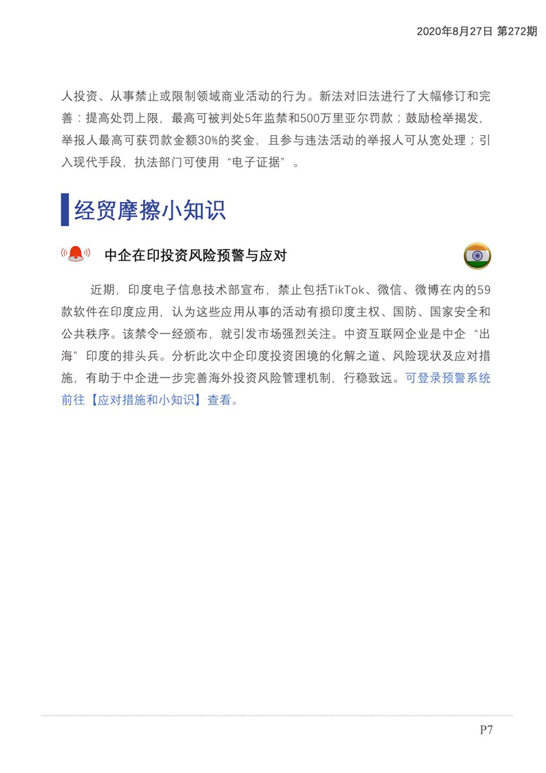 贸易摩擦预警及经贸信息快报(2020年第160期)