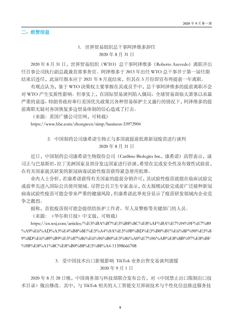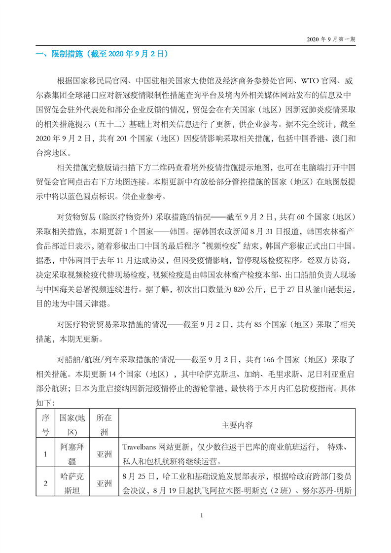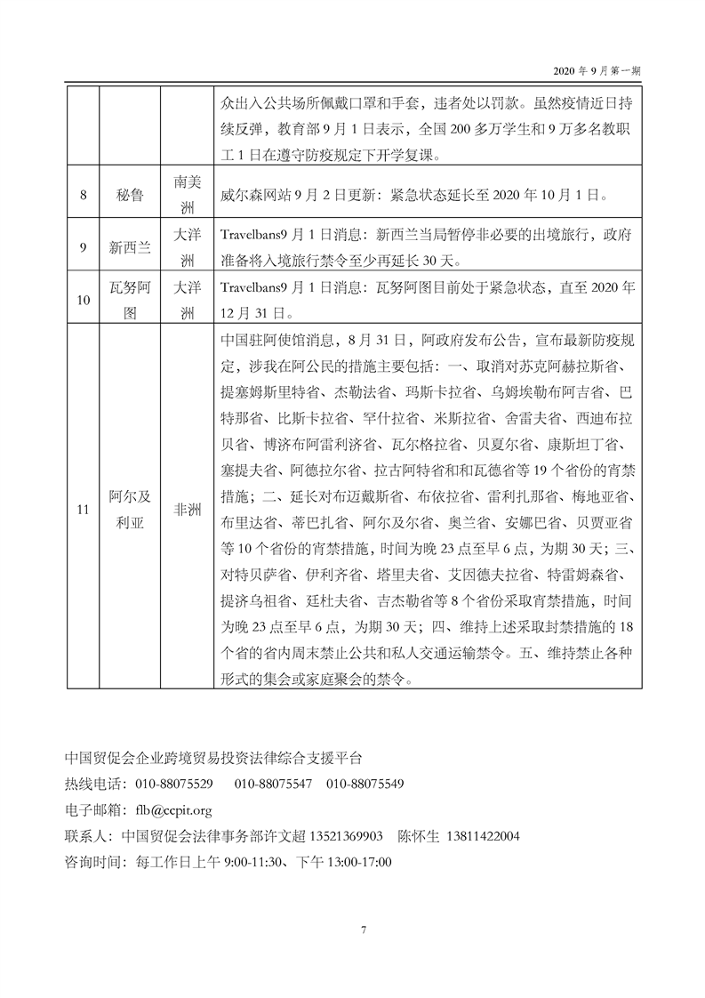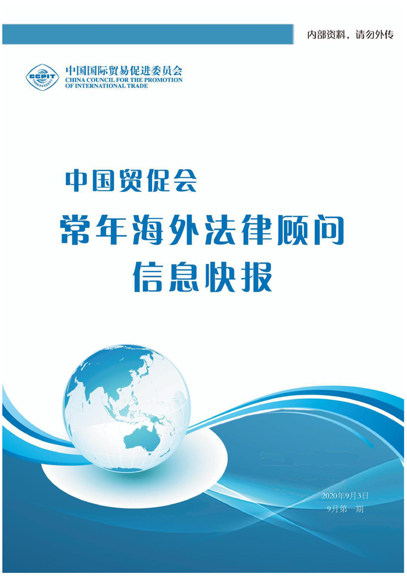 中国贸促会海外常法信息快报九月第一期