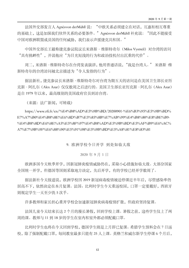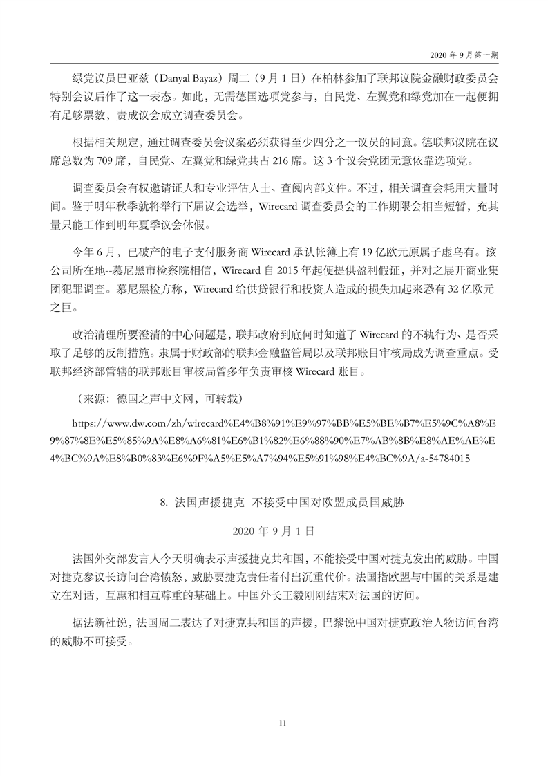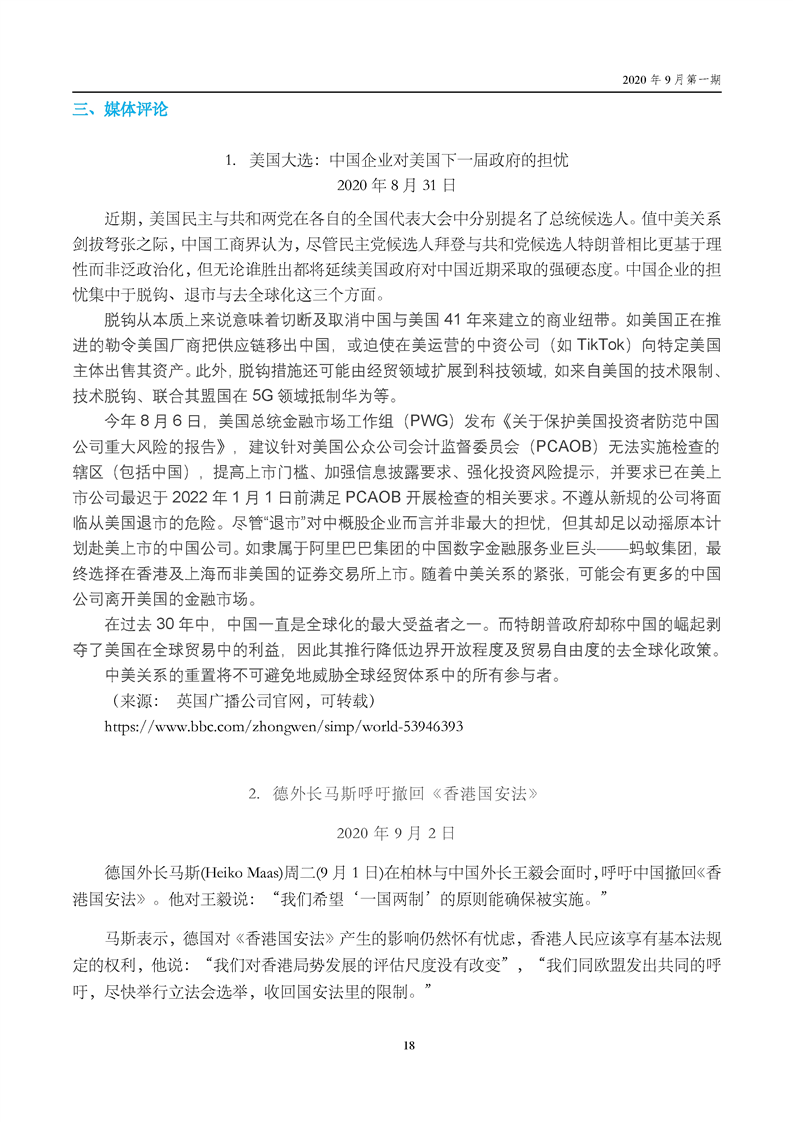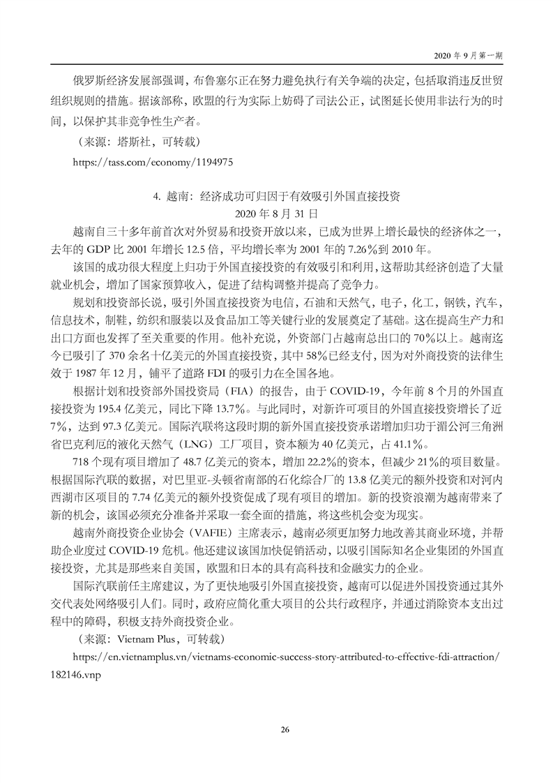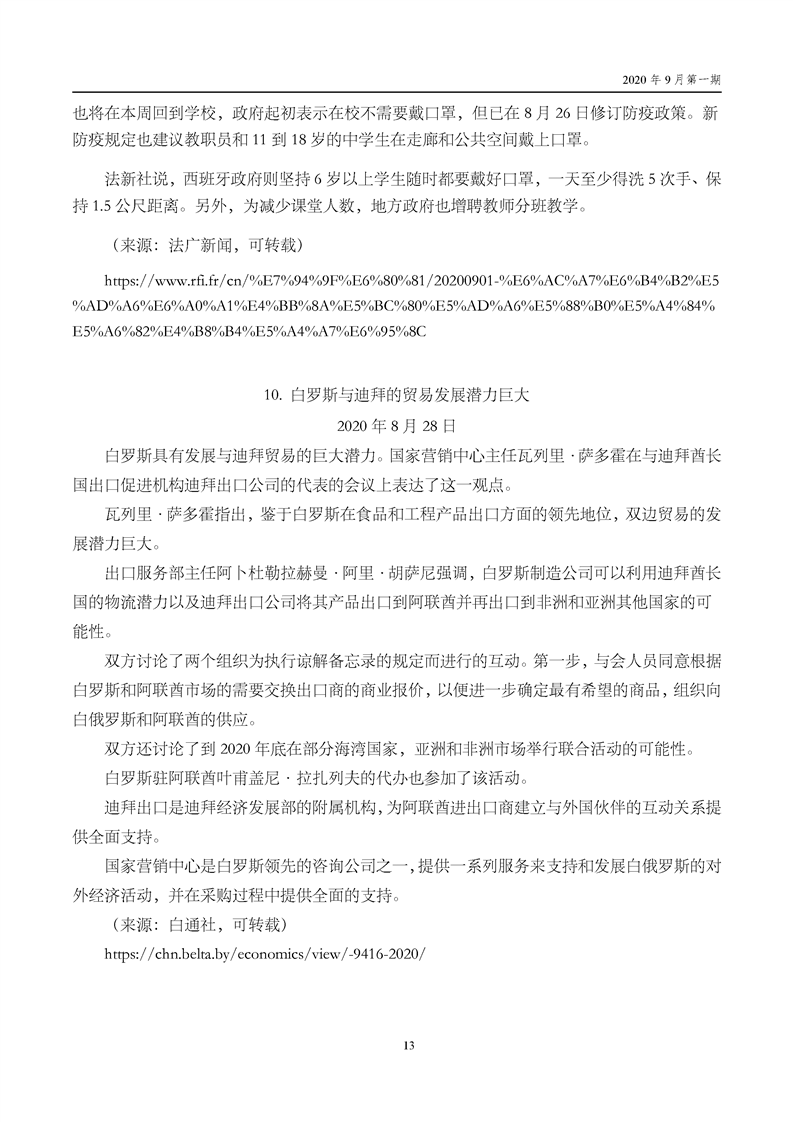 中国贸促会海外常法信息快报九月第一期