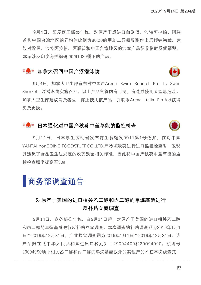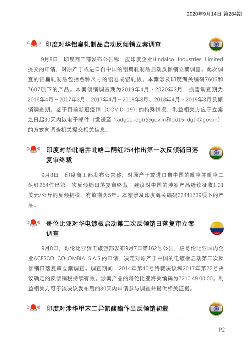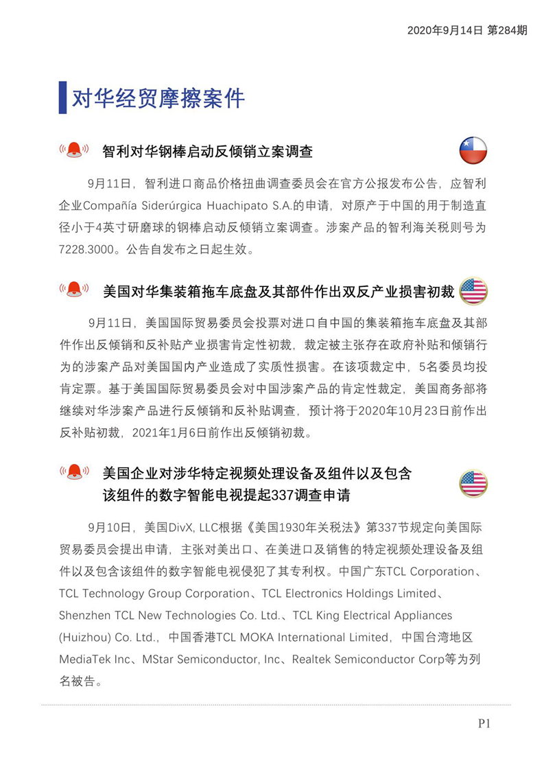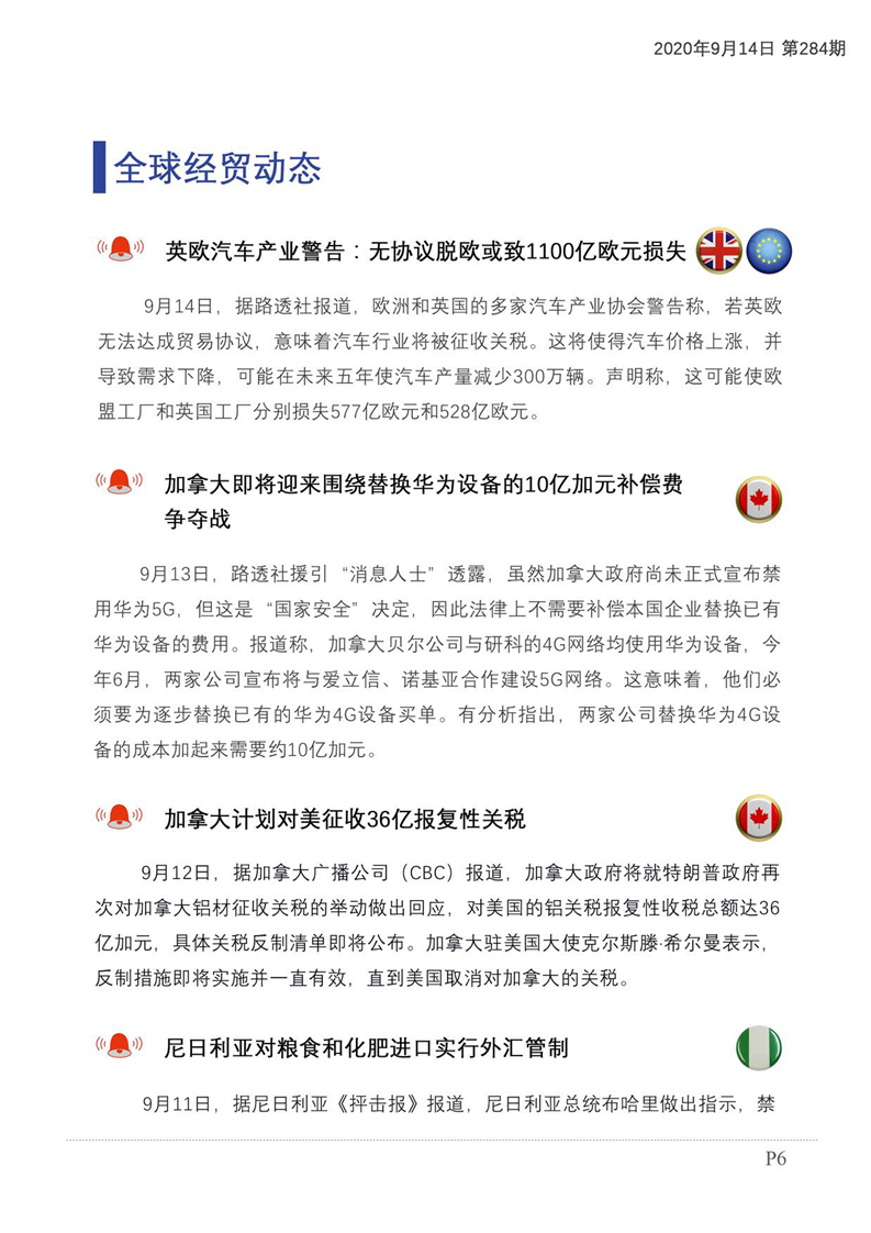 贸易摩擦预警及经贸信息快报(2020年第172期)