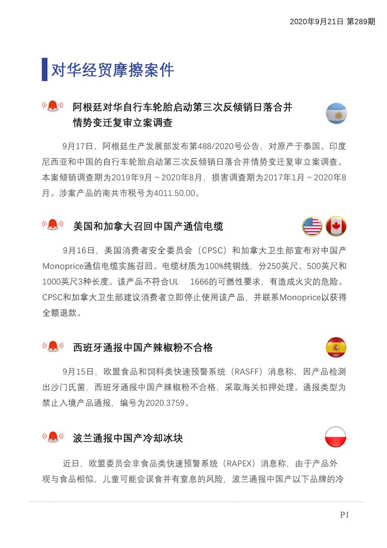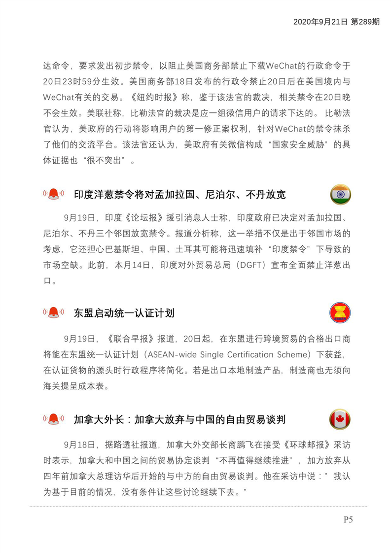 贸易摩擦预警及经贸信息快报(2020年第176期)