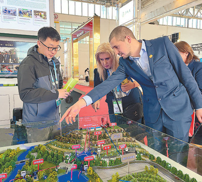 外国参展商在了解节水灌溉系统。 |